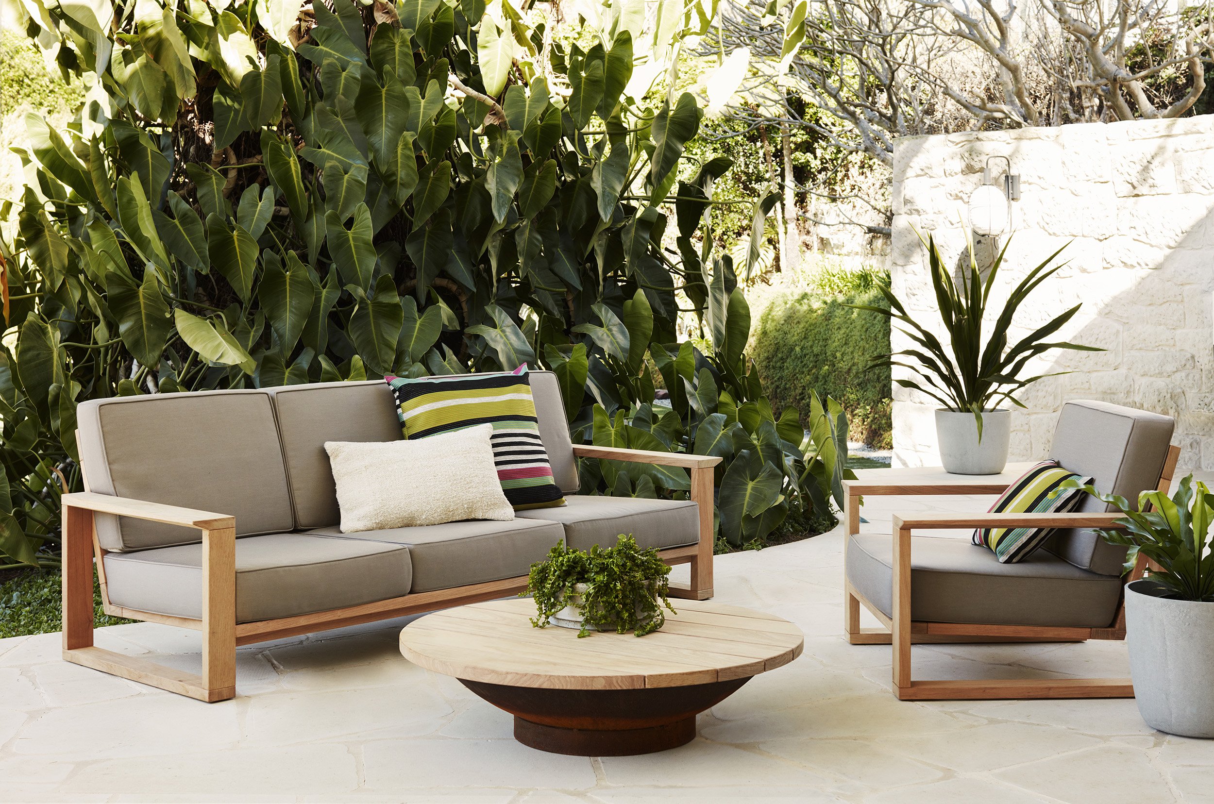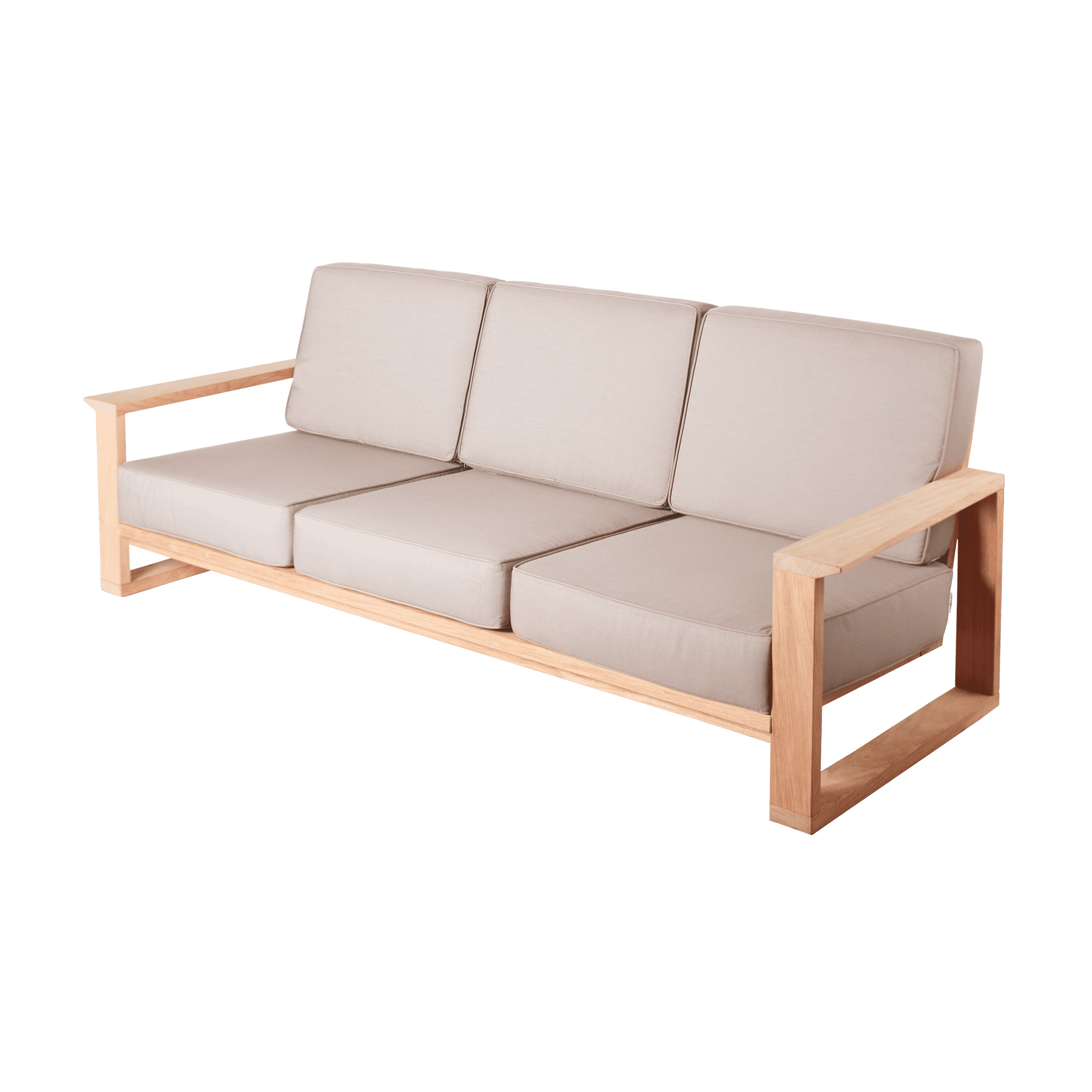 The Maxi three-seater is a low sofa that is extremely robust. The sofa is built for longevity and comfort with a simple, timeless aesthetic. Handcrafted in Australia, this range features Quick Dry foam cushions complete with covers in Westbury Textiles Nassau fabric - a synthetic outdoor fabric which is both soft and maintains a strong resemblance to natural linen. The fabric is available in six shades. Designed and made locally in Botany with the option of Fijian Mahogany (pictured) or Accoya.